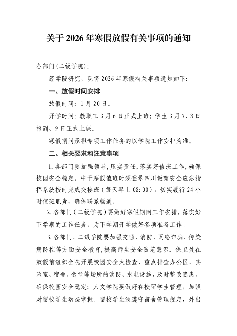 关于2026年寒假放假有关事项的通知