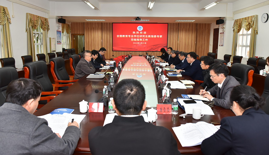 文学院院长唐雪莹、教育科学学院副院长文雪对我校教育硕士培养方案、建设思路进行汇报。专家组依次开展现场提问、抽查文件、现场听课、教学场所循证、导师座谈会等工作环节,全面检查我校教育专业学位研究生培养工作情况。