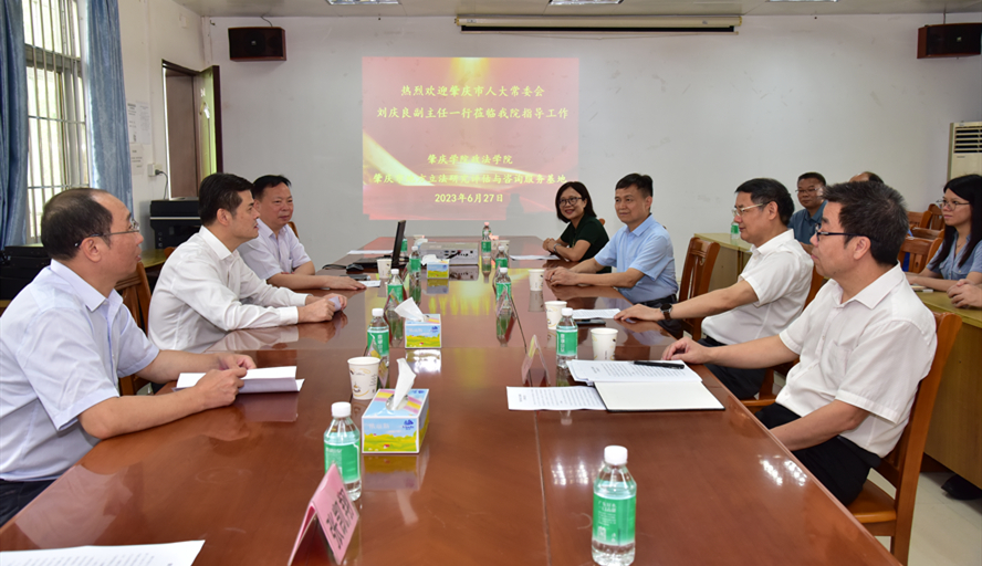 学院院长祁建平表示,对刘庆良主任一行莅临我院调研指导,深受鼓舞、倍感振奋。他表示,必赢242net官网政法学院是肇庆市法学师资力量最为雄厚的地方教育机构,学院期待能进一步加强与市人大及地方司法部门的合作交流,在学生实习见习、学术交流、调研考察等方面强化合作,共同服务地方经济社会高质量发展。