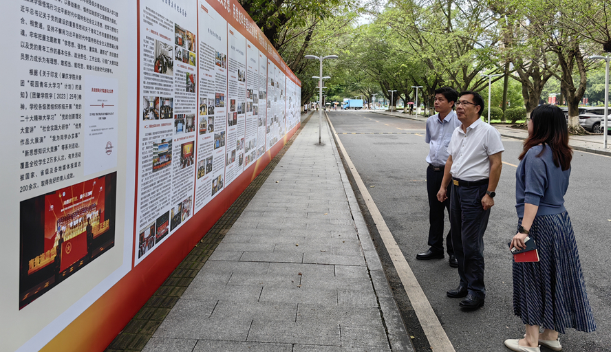 谢冠华调研了学校共青团“青年大学习”开展情况,了解学生发展中心的建设情况,并与学工部和团委负责人、学生骨干开展座谈。谢冠华对我校共青团工作表示肯定,强调要深入学习贯彻习近平总书记关于党的建设和关于青年工作的重要讲话精神,并把两者互相结合贯通起来,牢牢把握主题教育“学思想、强党性、重实践、建新功”的总要求以及党的青年工作的基本任务、政治责任、工作主线,深入推动学生会改革和学生社团改革,在服务学生中发挥桥梁和纽带的作用,在团员青年思想政治教育、社会实践、创新创业、繁荣校园文化和团组织的自身建设等工作中做出积极探索,持续做好“青马工程”“灯塔学习会”等品牌工作,不断争取新的进步。要深化开展社会实践研学活动,让学生在正确指导下主动参与活动,让学生在社会大课堂中成长,积极投身“百千万”工程,助推广东高质量发展和现代化建设。鼓励学生参加“挑战杯”“攀登计划”等创新创业活动,要在青年学生当中挖掘“创业之星”“自强之星”等典型榜样,加大展示典型示范力量的宣传力度,在工作、学习和生活中进一步弘扬五四精神,引领学生努力成长为有理想、敢担当、能吃苦、肯奋斗的新时代好青年。