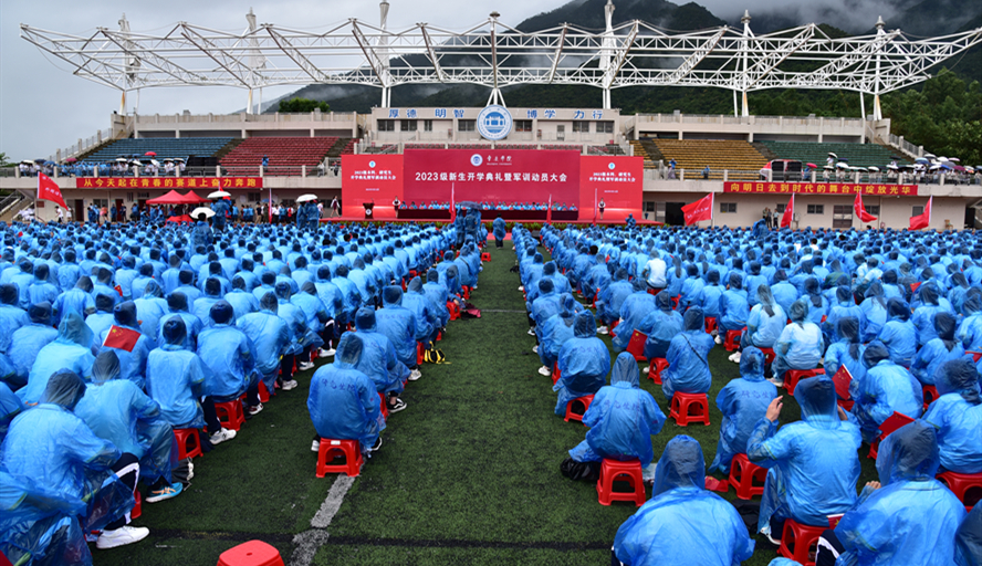 本网讯 凉风习习,秋雨绵绵。9月15日上午,2023级新生开学典礼暨军训动员大会在第二运动场举行。校党委书记谢冠华,校长吴业春,副校长李新昌、唐冬冬、胡文涛,帮扶队队长刘怡军、校党委委员出席典礼,相关职能部门负责人、各二级学院党委书记、院长、副书记、辅导员、新生班班主任、学生带班党员以及全体新生参加典礼,典礼由副校长肖起清主持。4880名本科新生、73名研究生新生同时开启在必赢242net官网的学业新征程。