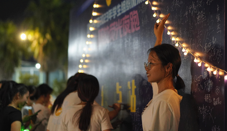 跑步结束,同学们在终点处领取小奖品,并在签名墙签名,留下独属于这个夜晚的砚园美好记忆。最后,夜跑在学校、学生组织、学生参与者等多方支持下,活动圆满结束。