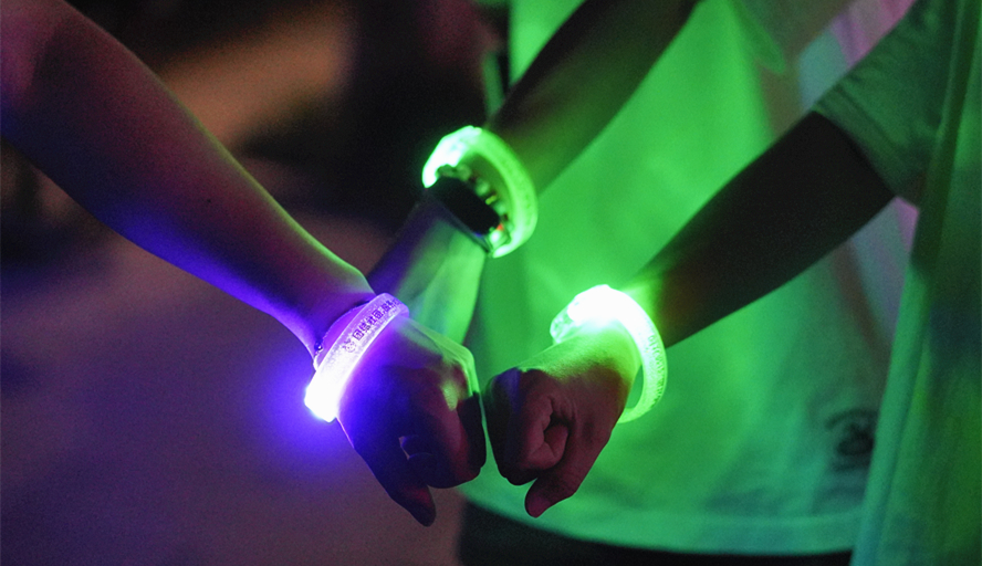 活动开始前,同学们跃跃欲试,在各学生组织摊位按时排队签到。参与者在志愿者的指引下打开能够记录移动轨迹的特定APP,选择沿规定路线独立完成跑步或跟随领跑员跑完全程,同学们热情高涨,现场氛围热闹十足。经过简单的热身后,参与者穿戴荧光手环后开始夜跑,从紫荆校道出发,途径图书馆、第二教学楼、教工食堂、体育馆、翰墨池,最终达到艺术大楼,队伍规模壮观。他们通过慢跑这一运动方式将青春活力的态度和健康生活的运动理念传递给周围每个人,让荧光手环点亮整个校园,在夜色中,携手并进、共同奔跑,欣赏风景、成为风景,点亮青春、逐梦星辰。为青年大学生崇尚健康、热爱运动的良好风貌作出生动的注解。