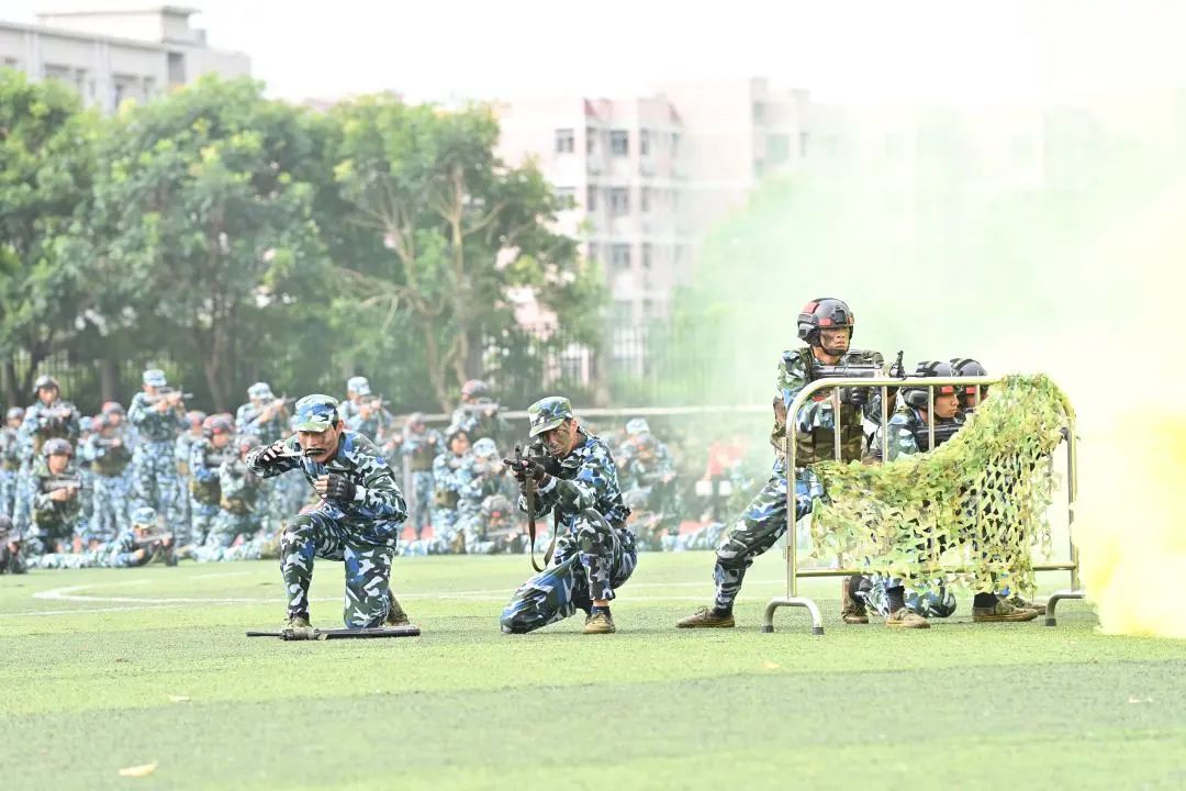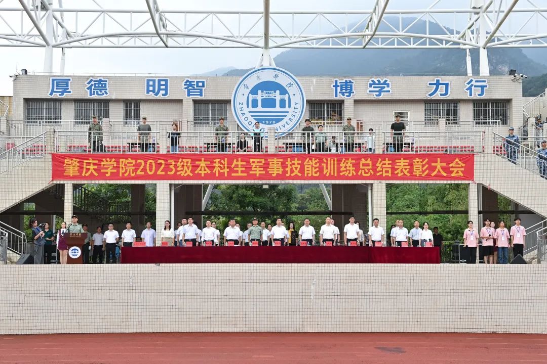 李新昌代表学校作军训工作总结,他表示,军训是落实立德树人根本任务、完善人才培养体系的重要一课,学校党委高度重视,专门成立军训工作领导小组,研制军训工作方案,并与相关单位通力协作,为军训工作顺利进行保驾护航。在严格按照军训大纲要求进行军事技能训练期间,我校组织国防教育、各类安全主题讲座和应急疏散演练等技能培训。他代表学校向肇庆军分区司令员以及各位教职工致以衷心的感谢,并向顺利完成军训任务的2023级全体同学表示热烈的祝贺,同时也提出三点期望:一是以军训为“动员令”,发扬“任尔风雨,万击还韧”的战斗精神,努力成长为新时代的奋斗者;二是以军训为“导航仪”,发扬“叩石垦壤,挖山不止”的学习精神,努力成长为新使命的答卷者;三是以军训为“定盘星”,发扬“暮雪朝霞,意气不改”的创新精神,努力成长为新征程的奔跑者。