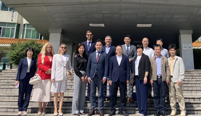 本网讯 10月23日上午,俄罗斯喀山联邦大学副校长阿利舍夫·蒂米尔汗率代表团访问我校,副校长胡文涛会见了来宾一行,教务处、国际合作与交流处、经济与管理学院、计算机学院、美术学院负责人及代表参与座谈交流。