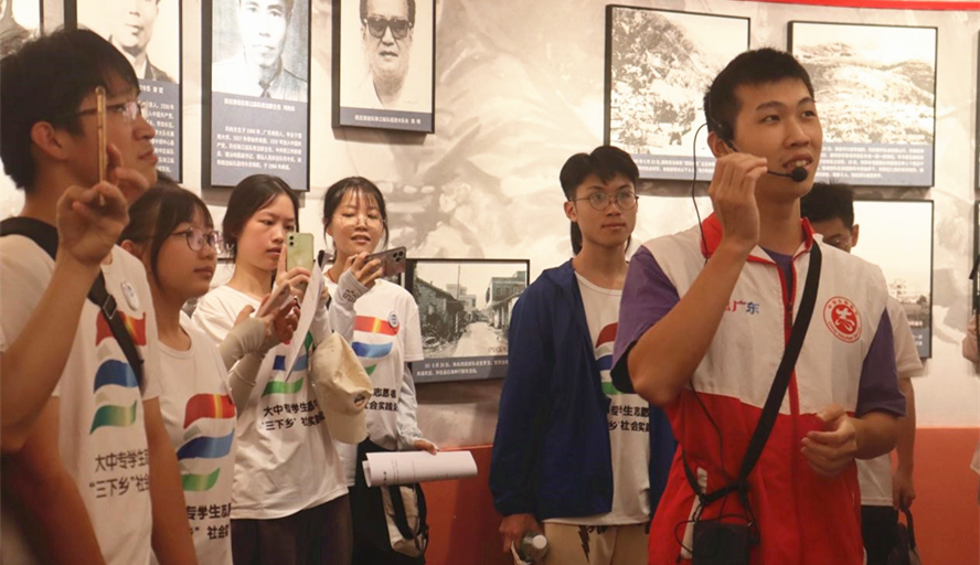 (图为实践队员在粤桂湘边纵队纪念馆进行访谈调研和参观学习)