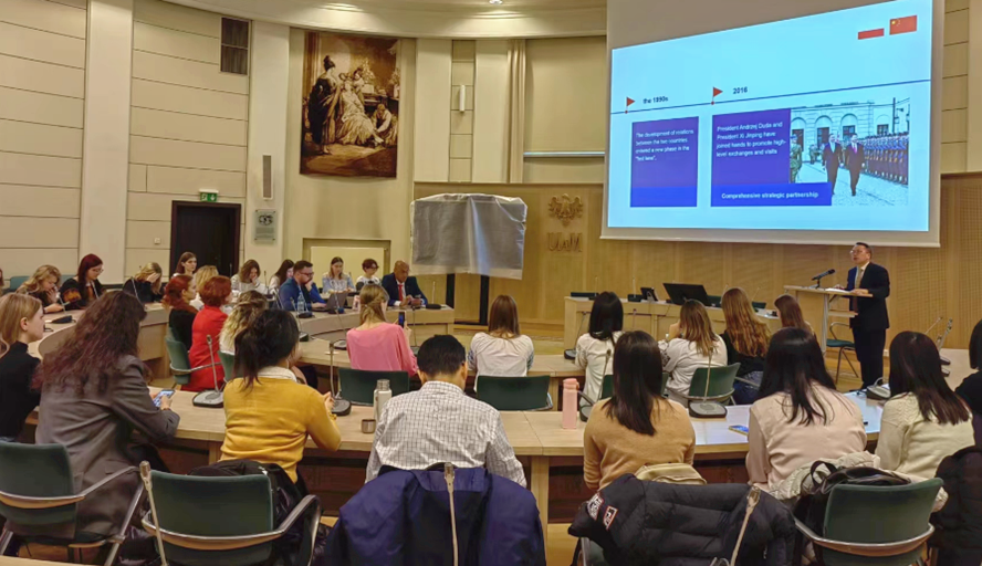 波兹南密茨凯维奇大学是波兰国内排名前三、欧洲知名的公立高校,该校自2011年与我校签订合作协议以来选派13名教师来我校任教,我校共派出62名师生到该校访学交流。在访问该校期间,代表团分别与校长Bogumiła Kaniewska教授、分管国际事务副校长Rafal Witkowski教授等校领导座谈交流,回顾两校合作传统,巩固两校合作友谊,深化和拓展两校新的合作方向和合作领域,与经典语与波兰语学院院长Tomasz Mizerkiewicz教授等深入研讨师生交流互访、3+1(2+2)双学位项目、本硕博晋升、国际学术交流、国际期刊联办、国际智库平台建设、中国中东欧研究中心等具体合作事项。胡文涛在密大学术报告厅作题为“Building up Closer Bonds by Promoting People-to-People Exchanges”的专场英文学术报告,深受密大师生好评。