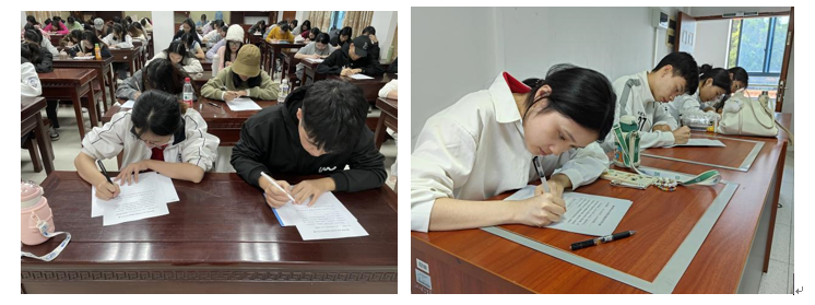 比赛分为三个项目:钢笔字、粉笔字和简笔画。在钢笔字的比赛现场,共有来自12个二级学院的273名师范生参赛。在比赛过程中,参赛选手不仅展示了书法技巧,也体现了对汉字艺术的热爱和尊重。大家用笔尖诠释了汉字的韵律和美感,展示了个性和才华。