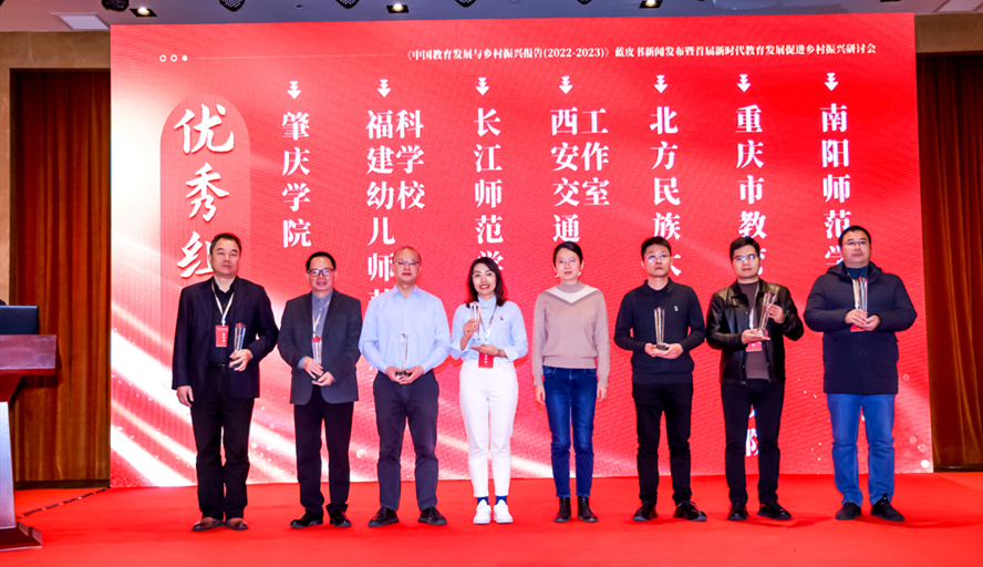 本网讯 12月3日,由北京师范大学中国乡村教育发展研究中心、社会科学文献出版社主办的《中国教育发展与乡村振兴报告(2022-2023)》蓝皮书新闻发布会暨首届新时代教育发展促进乡村振兴研讨会在京举行。我校获该蓝皮书优秀组织奖,副校长肖起清代表学校接受颁奖,并在论坛上发言。