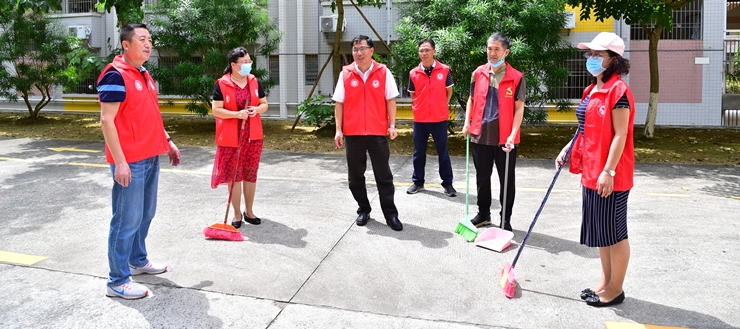 唐冬冬也来到蕉园社区,与社区干部一同考察社区的创文工作情况。他询问社区垃圾分类现状与保洁人员工作情况,要求加大力度,及时清理烟头等垃圾,治理乱停车等不文明现象。社区领导感谢学校的大力支持,并表示一定尽全力打赢创文攻坚战。