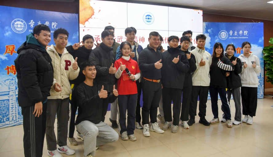 本网讯 12月18日,世界武术散打冠军、中国超级散打王柳海龙,广东省武术协会副秘书长程志刚,武术家延军一行来到我校,在学生发展中心青年学习厅与体育与健康学院武术专业学生举行交流活动,勉励同学们传承弘扬中华武术文化,勇于拼搏,敢于胜利,向着既定目标与理想持续奋进。