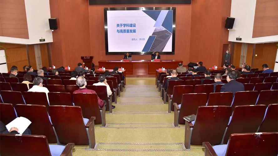 2月,学校召开高质量发展工作会议,提出“11755”高质量发展计划,用以明确学校发展的战略部署和一体化推进教育、科技、人才融合发展的工作思路。第一个“1”指一流学科建设,通过全省“冲补强”计划提升学科建设水平;第二个“1”指增补至10个硕士点,最大限度实现各学科硕士点全覆盖;第三个“7”指扩大教师队伍规模同时,优化结构,提高素质创新科研能力,达成教师队伍70%为博士的目标;第四个“5”指国字号教学成果数量达到5个或以上;第五个“5”指国字号科研成果数量达到5个或以上。