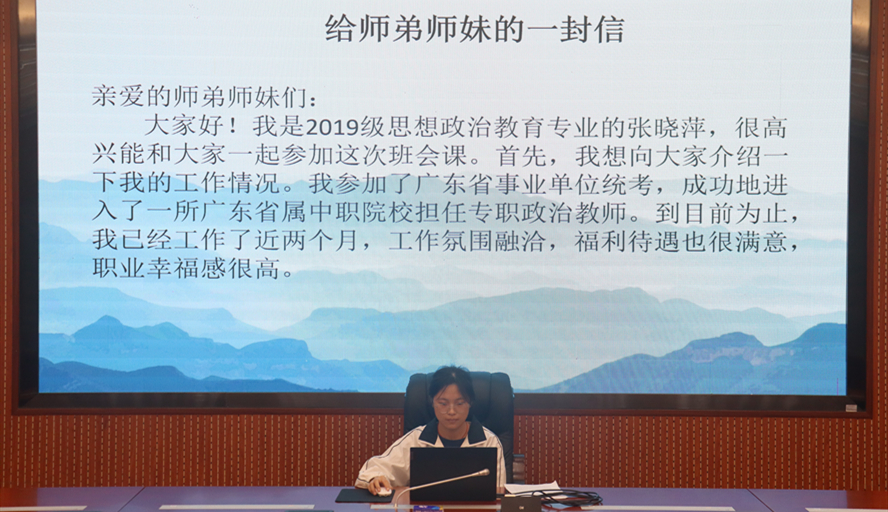 会后,吴业春参加了21思政3班的主题班会。班会由班主任高春海主持,主题为“合理规划促成长,肩负使命勇担当”。班会上,高年级师兄师姐为同学们分享了有关考公、考编、考研的成功经验。高春海强调,同学们应结合多方面因素,综合考虑自身发展道路,做好努力奋斗的准备。吴业春在班会课后表示,希望同学们仰望星空、脚踏实地,走好人生的每一步路,将个人的发展与国家和社会的发展紧密结合起来,在青春的赛道上奋力跑出最好成绩。