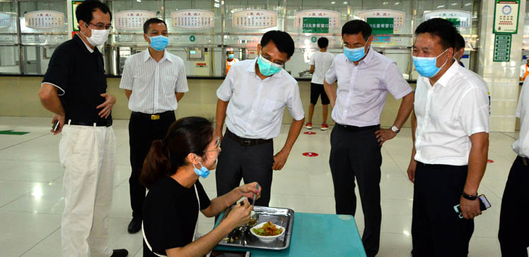 本网讯 为切实做好全省学校食堂食品安全工作,保障师生饮食安全,省疫情防控指挥办学生返校工作专班日前联合派出飞行检查组,对全省学校食堂、为学校供餐的集体用餐配送单位、校园周边食品经营单位开展食品安全飞行检查和监督抽检。5月20日,教育厅副厅长朱超华率领检查组来到我校开展检查。