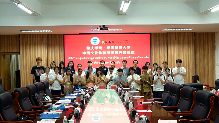 开班式上,我校对外交流合作部部长李赛男对泰国格乐大学研学团的到来表示热烈欢迎,并介绍了肇庆市和我校基本情况、两校合作基础及本次研学安排。她表示,肇庆市是岭南文化名城,文化底蕴深厚,此次研学安排丰富的传统文化体验、生动的实地考察活动以及有趣的师生交流项目,希望格乐大学师生通过此次研学能够了解肇庆、喜欢肇庆,更深层次地认识并喜欢多元中国文化。此次研学亦是两校推动落实合作共识的重要实践,期待今后两校开展更大规模、更广领域、更深层次的交流互访,助力中泰友谊之花持续绚丽绽放。