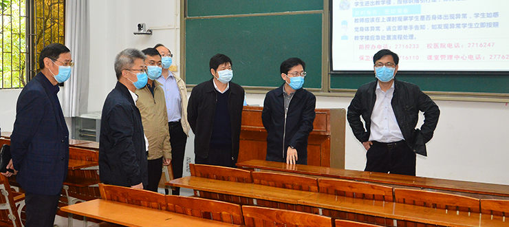 本网讯 4月24日,市委常委、宣传部部长江启宁率领公安、卫健、市场监管、疾控、教育等市政府职能部门负责人来到我校,就春季学期学生返校疫情防控准备工作开展深入调研,传达市委市政府对于我校学生返校疫情防控工作的关心和要求。校党委书记曾桓松、校长吴业春、校党委副书记谢冠华陪同。