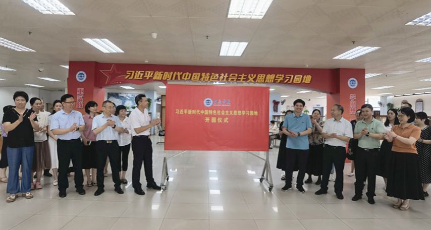 仪式上,欧洪湛对园地的建成表示祝贺,他回顾了园地的前期筹备和调研工作,肯定了在相关部门的协同配合下,图书馆(档案馆)出色地完成了学习园地建设,园地主题更加突出,所陈列图书更加丰富和新颖。他希望图书馆继续利用图书资源优势,充分发挥园地思政育人功能,努力把园地打造成学校二级党组织和广大师生深入学习和研究习近平新时代中国特色社会主义思想的资源平台。