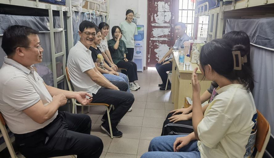 本网讯 7月8日下午,副校长唐冬冬在环境与化学工程学院党委书记刘远君及相关辅导员的陪同下走访了2023级化学专业宿舍,与同学们进行了座谈。