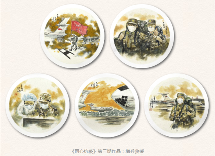 经过连续数天的努力,题为“率先垂范”“医务救护”“增兵救援”的头三个篇章顺利出炉。在这三个篇章的十多幅作品中,钟南山院士、李兰娟院士、张定宇院长、张继先大夫等抗疫先锋,不知道名字却一直奋战在抗疫一线的医务人员,驰援武汉的解放军战士的形象跃然纸上。这些人物形象给人带来的,是战“疫”必胜的决心和斗志。