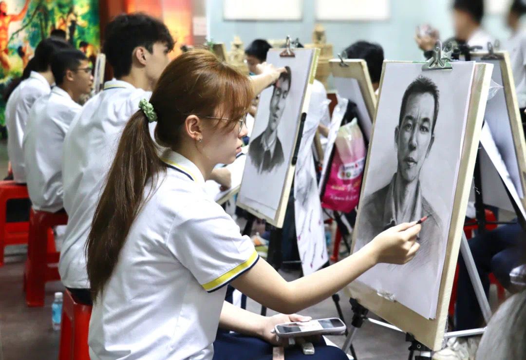 “追忆峥嵘岁月,绘铸烈士英魂”实践团笔绘先烈遗像。