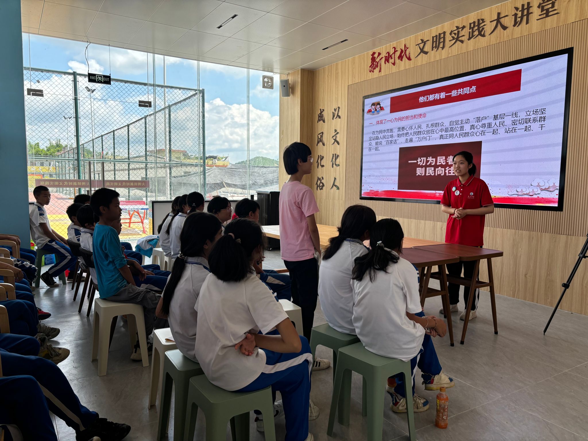 “党的声音进万家”实践团在封开县大洲镇新时代文明实践大讲堂开展红色教育。