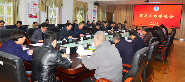 本网讯 1月15日,我校召开重点工作推进会,展望和探讨学校新一年的若干重要工作任务,同时对学校未来几年的决策思路、奋斗目标、发展理念、重大举措提出设想和愿景,强调要把握发展机遇,做好科学谋划,充分调动全体师生员工的积极性和战斗力,推动学校建设步伐,在人才培养、科学研究、社会服务、文化传承创新等各个方面不断取得新进展,努力通过硕士学位授权单位评审,进一步提高办学质量、办学水平,以优异的办学成绩向50周年校庆献礼,并为学校更加长远的发展奠定坚实的基础。