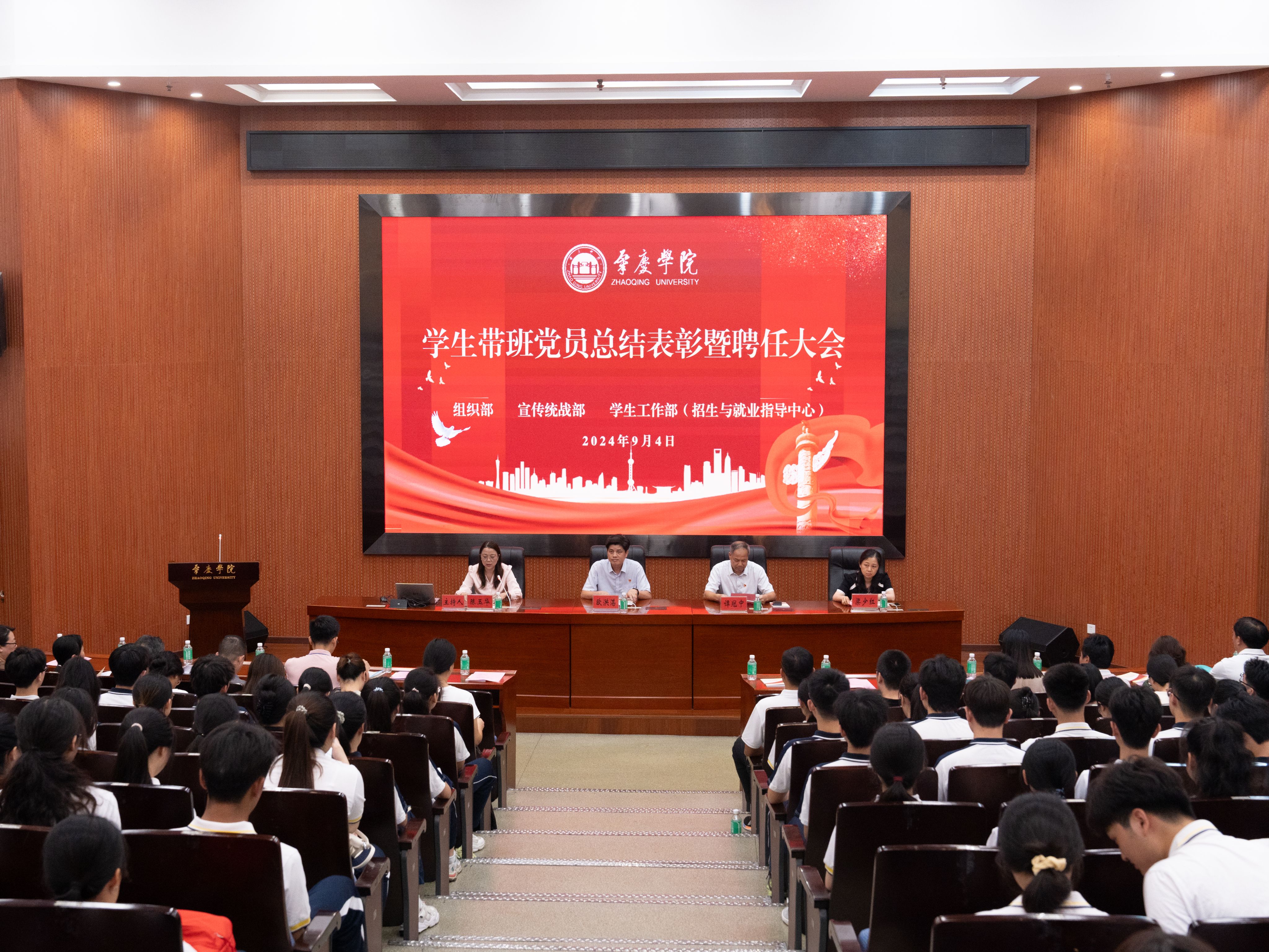 本网讯 9月4日,2024年学生带班党员工作总结与聘任大会在我校学术报告厅召开。会议总结过去一年学生带班党员的工作成就,表彰优秀带班案例、优秀学生带班党员和学生带班党员标兵,旨在激励新一批学生带班党员积极工作,发挥先锋模范作用。