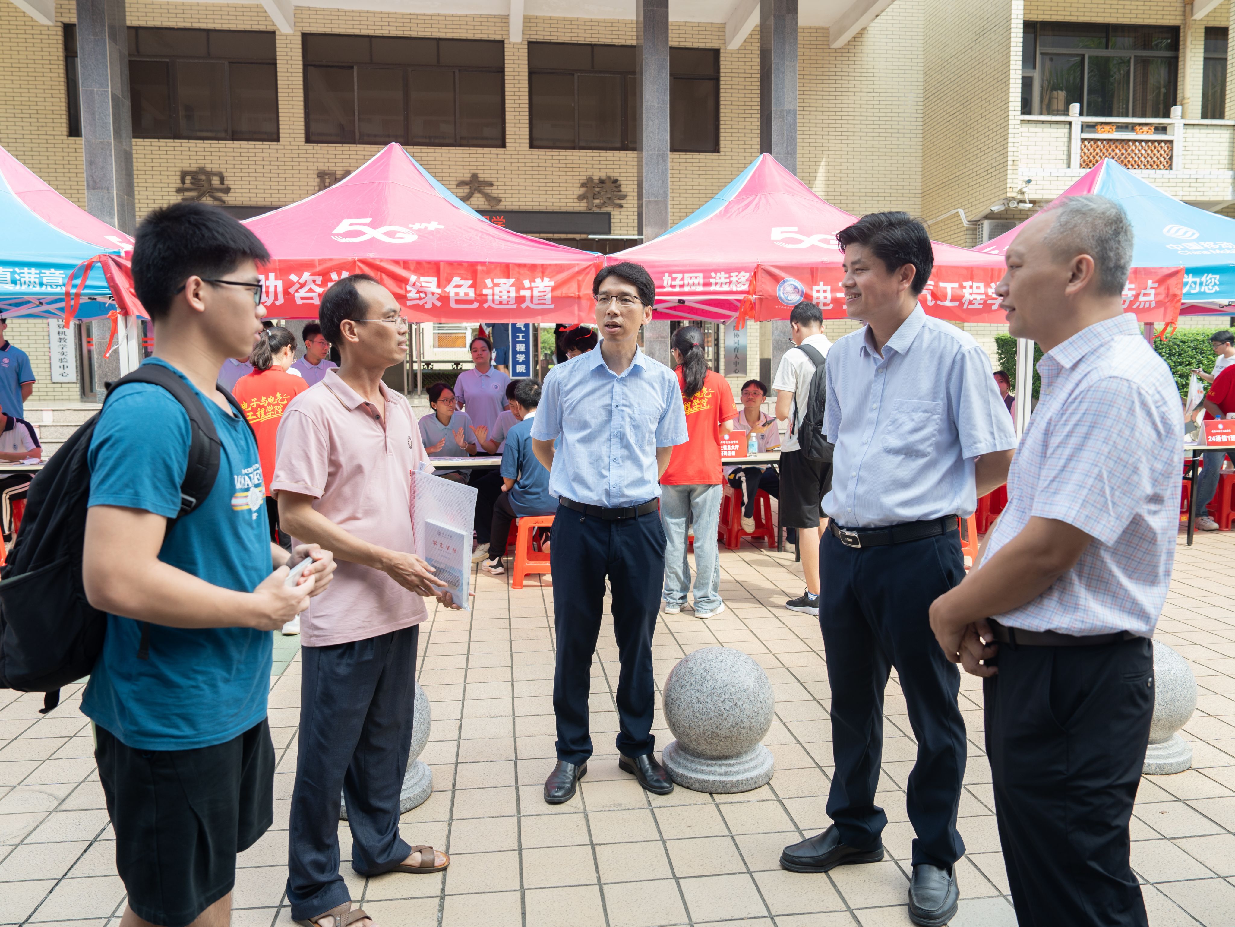 当天,校领导分别来到主校区和星湖校区报到点,检查指导迎新工作进展。校党委书记谢冠华、党委副书记欧洪湛、副校长肖起清、胡文涛还深入区新生宿舍,看望包括少数民族学生、新疆籍、西藏籍学生在内的新生代表。校领导与新生及家长交流畅谈,询问他们的报到情况,鼓励新生珍惜时光,奋发学习、积极向上。