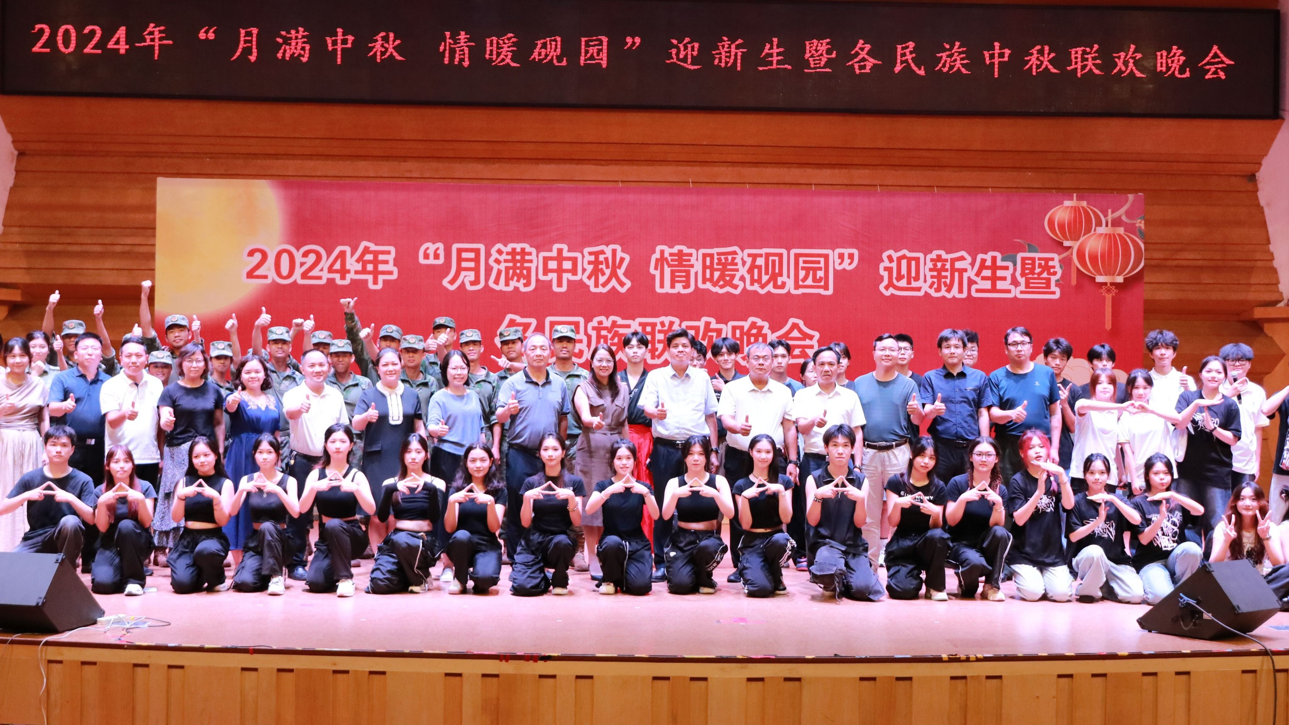 本网讯 为庆祝中秋佳节,同时热烈欢迎2024级新生的到来,9月17日晚,学校“月满中秋 情暖砚园”迎新生暨各民族中秋联欢晚会成功举办。晚会主会场设在必赢242net官网陈熹音乐厅内,各二级学院在各自训练场举行了分会场欢庆活动。学校党委副书记欧洪湛、副校长李新昌出席活动,各单位相关负责人参加主会场活动。