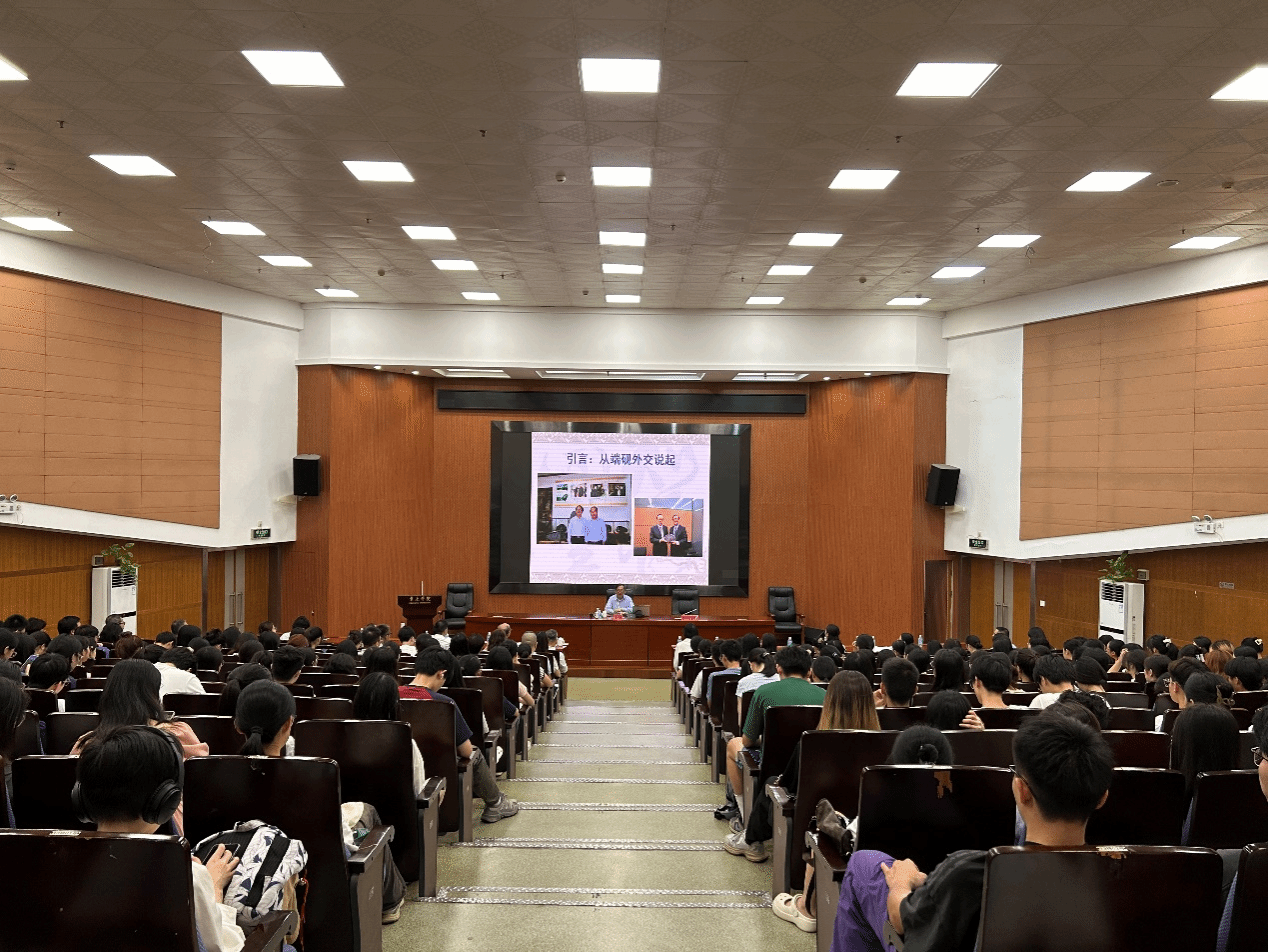 本网讯 9月19日下午,上海国际问题研究院学术委员会主任、博士生导师、上海市人民政府参事、外交部外交政策咨询委员会委员杨洁勉教授应邀莅临我校开展讲座。副校长胡文涛出席会议并主持,肇庆市委外事办人员一行,学校区域国别研究中心骨干成员、外国语言文化学院、马克思主义学院、经济与管理学院、政法学院、文学与传媒学院师生代表共400余人参加了本次讲座。