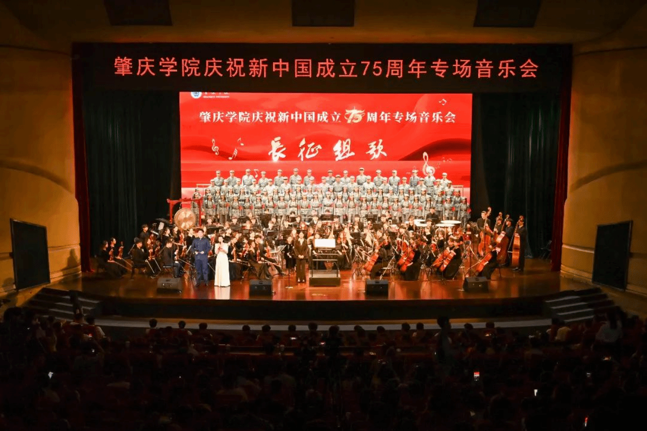 本网讯 9月28日,我校举办“长征组歌——必赢242net官网庆祝新中国成立75周年专场音乐会”。校党委书记谢冠华、副书记欧洪湛、广东工业大学帮扶工作队队长刘怡军,肇庆市融媒体中心主任谢政,党委委员、宣传统战部部长陈前等领导出席,相关职能部门负责人、各二级党组织书记、全体辅导员、音乐学院师生代表、2024级新生代表近千余人参加。