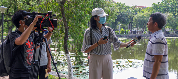 当天上午,肇庆电视台就抗日战争胜利纪念日及习近平总书记等党和国家领导人出席向抗战烈士敬献花篮仪式,对我校旅游与历史文化学院历史系教授李怀顺、学生进行了采访。李怀顺表示,抗日战争是世界反法西斯战争的重要组成部分。中国人民在抗战时期,众志成城、共赴国难、流血牺牲,终于取得了近代以来反侵略战争的第一次完全胜利。今天,开展纪念中国人民抗日战争暨世界反法西斯战争胜利75周年向抗战烈士敬献花篮仪式,是一次深刻的爱国主义教育和革命传统教育。随后,李怀顺谈到自己作为历史教育工作者的责任与义务,表示不但要铭记历史、缅怀先烈、珍爱和平,更要不怕苦、不怕累,全身心地投入到自己的本职工作中去,为人师表、教书育人,为实现中华民族伟大复兴贡献力量。