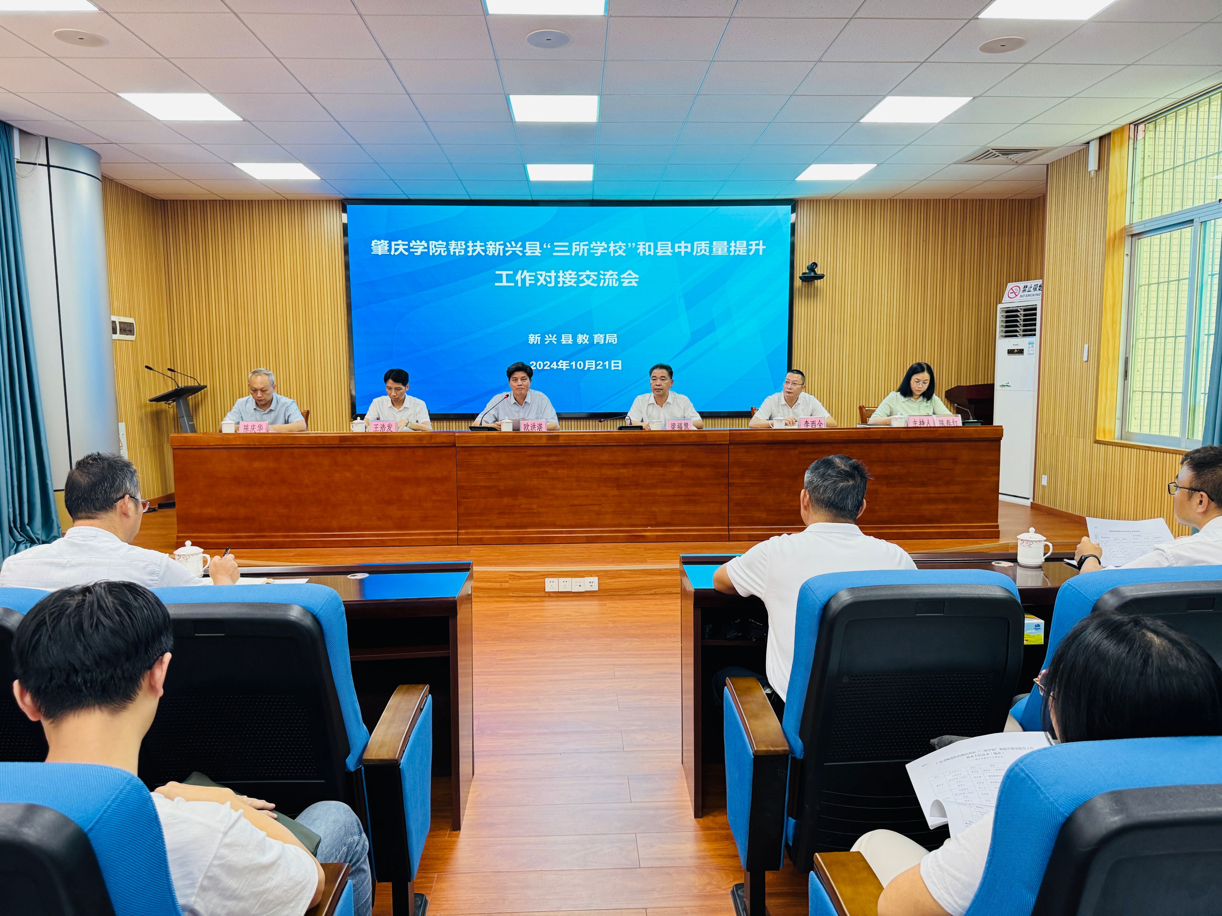 本网讯 10月21日,学校党委副书记欧洪湛带领电子与电气工程学院党政领导班子和帮扶教师工作团队前往新兴县,正式对接“三所学校”和县中质量提升工作。新兴县委常委梁福慧、教育局党组书记李西全、局长陈春红、新兴县各乡镇和学校负责人等参加对接会。