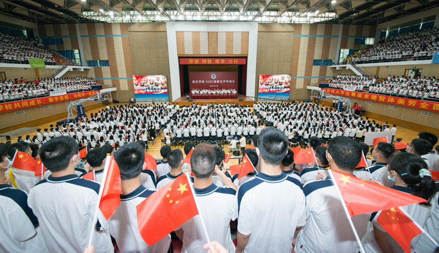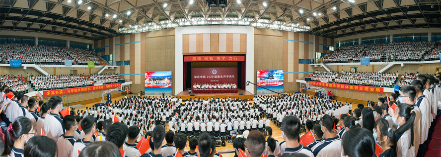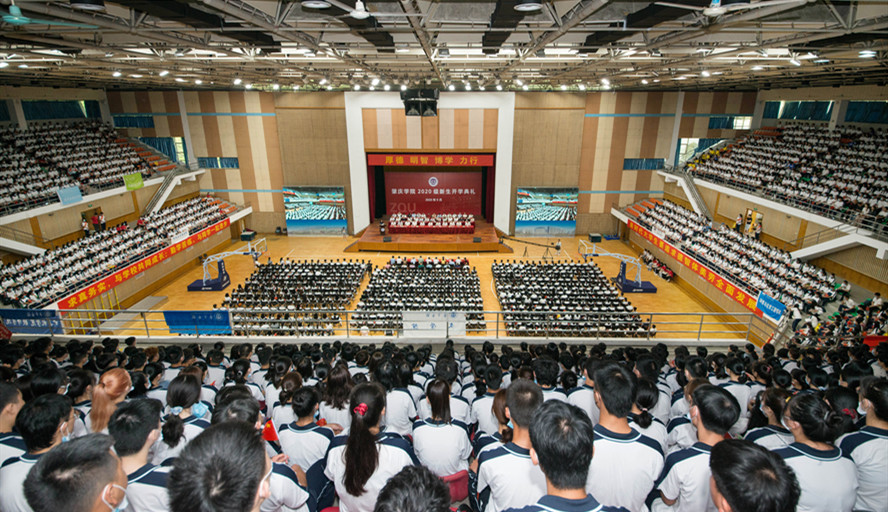 本网讯 9月21日上午,我校在体育馆举行2020级新生开学典礼,以庄重而热烈的典礼仪式,诚挚欢迎来自全国17个省(区)的6000多名新生来到砚园。