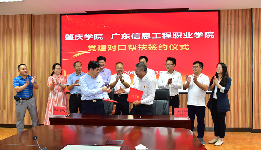 曾桓松认为,开展公办高校与民办高校党建对口帮扶,是全面从严治党向纵深推进的具体体现,对于双方党建事业与办学事业的发展都具有重要的意义。他介绍了我校党建工作情况,表示我校将按照省委教育工委的要求,运用好学校在党的建设中的好经验、好方法,通过双方共同构建的沟通衔接机制,加强交流,密切联系,聚焦广东信息工程职业学院党建工作的薄弱环节,推动其党建工作全面进步、全面过硬,为落实立德树人根本任务,完成为党育人、为国育才的办学目标提供坚强的政治保障。他希望两校认真贯彻落实党建对口帮扶协议和工作方案,通过学校搭平台、院系结对子、支部手拉手,找准切入点,多层面、多角度、全方位开展党建结对共建活动,确保对口帮扶工作落到实处,同时也希望双方以党建对口帮扶为契机,推进办学上的合作交流,努力做到互帮互助、优势互补、协同育人,推动两校事业新发展,为肇庆加快绿色崛起,争当湾区新秀作出应有的贡献。