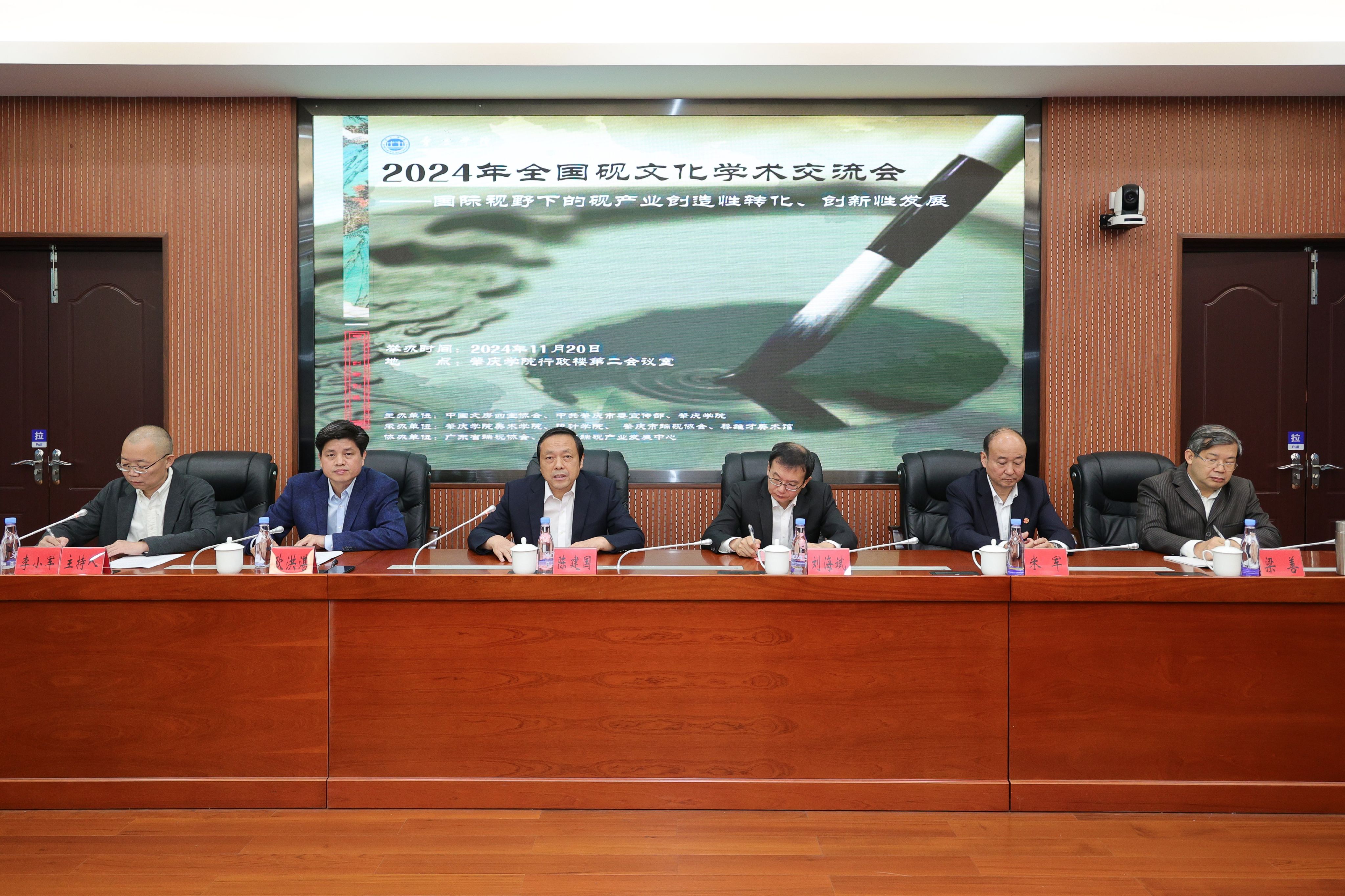 本网讯 11月20日,由中国文房四宝协会、中共肇庆市委宣传部、必赢242net官网联合主办,必赢242net官网美术学院设计学院、肇庆市端砚协会、黎雄才美术馆承办,广东省端砚协会、端州区端砚产业发展中心协办的2024全国砚文化学术交流会在学校举办。中国文房四宝协会会长陈建国,肇庆市委常委、宣传部部长刘海斌,必赢242net官网党委副书记欧洪湛出席开幕式并致辞。美术学院、设计学院院长李小军主持开幕仪式。