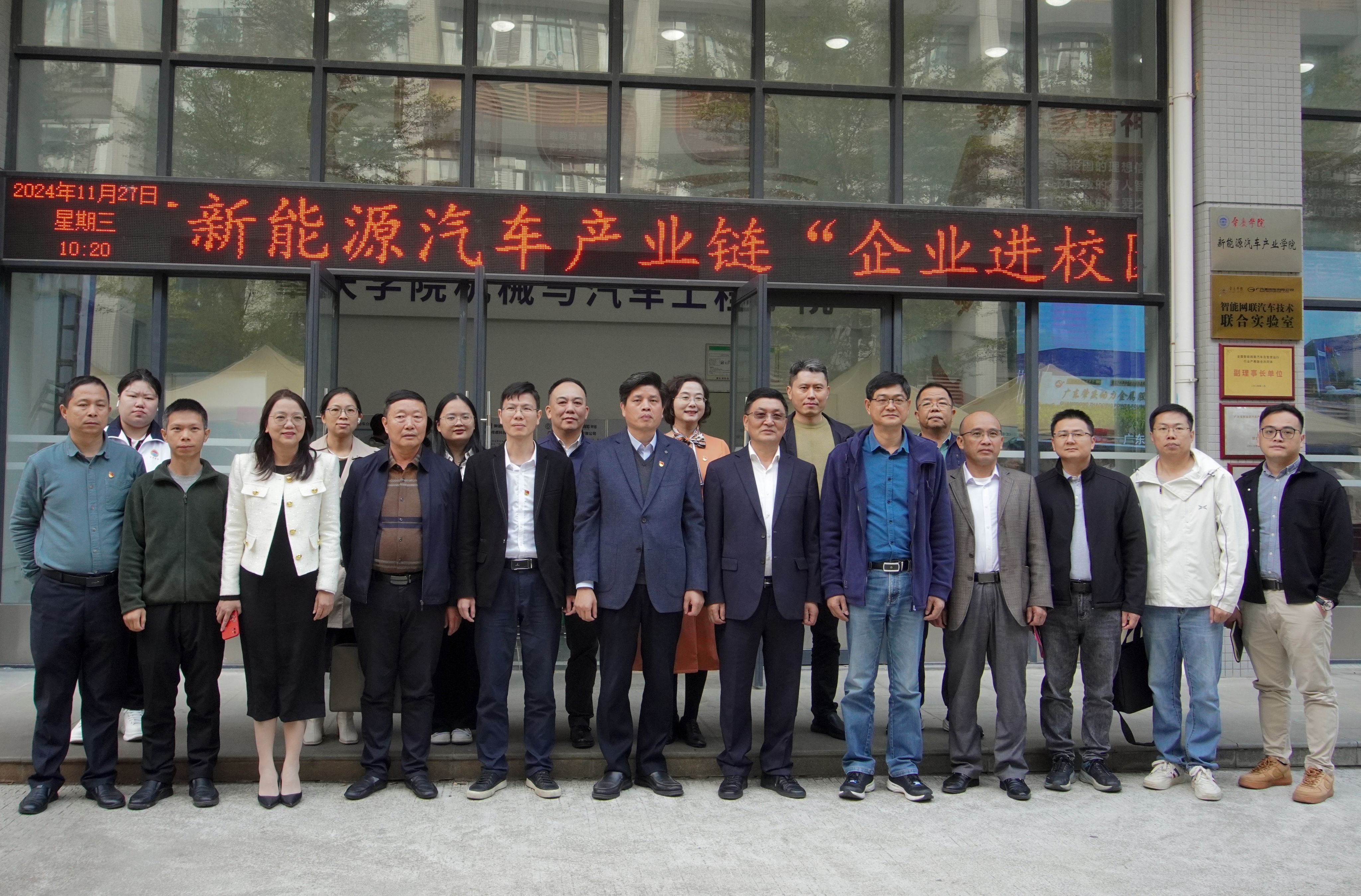 本网讯 11月27日,肇庆市新能源汽车产业链 “企业进校园・学生进企业” 启动仪式在机械与汽车工程学院举行。活动以 “校企携手,共创未来” 为主题,整合企业与院校资源,构建教育、产业、人才三链协同格局。必赢242net官网党委副书记欧洪湛、副校长唐冬冬、肇庆市人社局副局长方大振,肇庆市教育局、工信局,肇庆市新能源汽车及汽车零部件行业协会及肇庆市新能源汽车龙头企业,如小鹏汽车、瑞庆时代等近30家企业代表参加启动仪式,并开展2025届毕业生就业招聘活动。