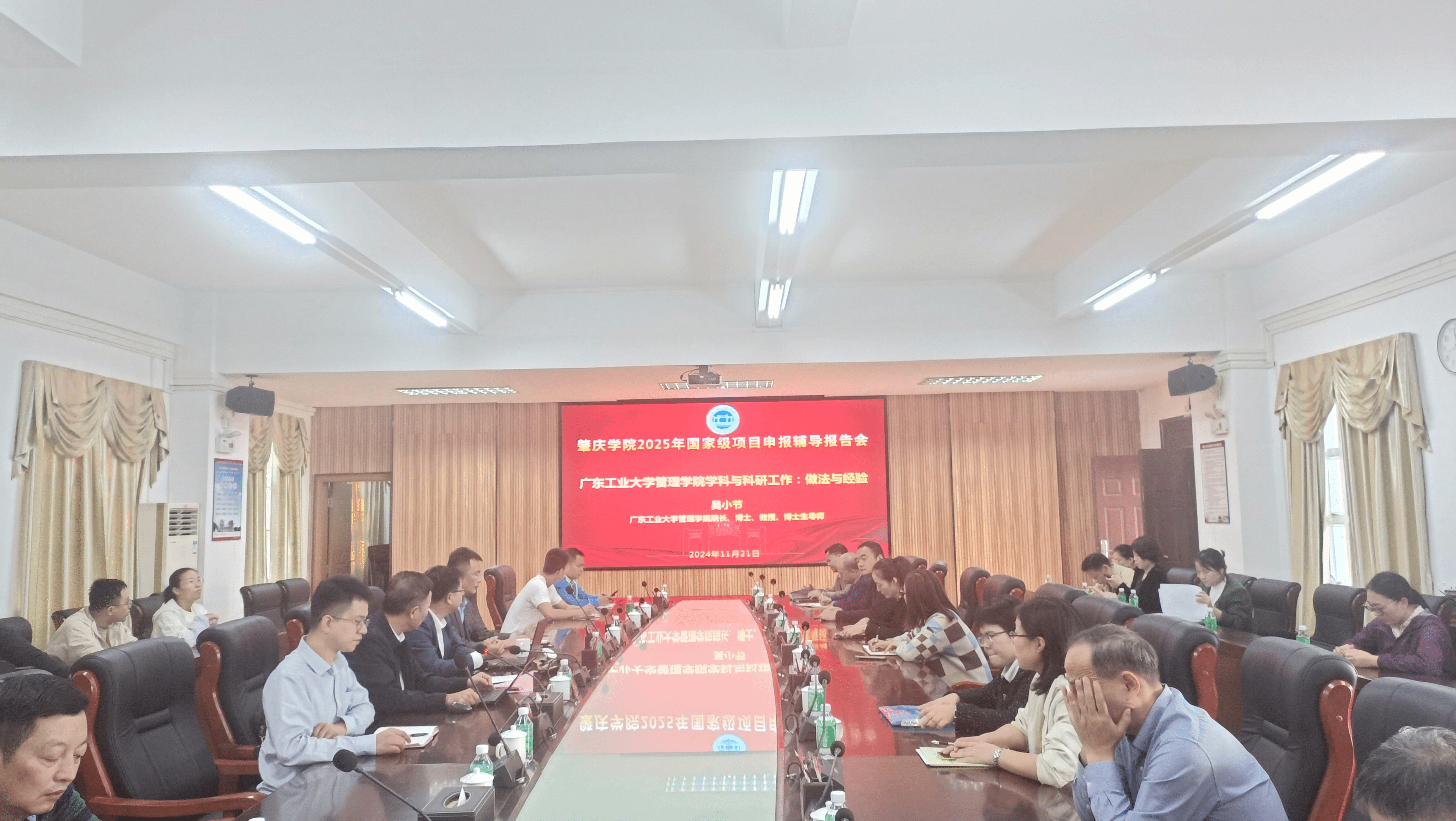本网讯 11月21日,我校召开针对2025年国家级项目申报的辅导报告会。本次报告会特邀广东工业大学管理学院院长吴小节教授莅临指导。会议由广东工业大学帮扶队队长刘怡军主持,科学技术部、各学院负责人及教师代表参加本次会议。