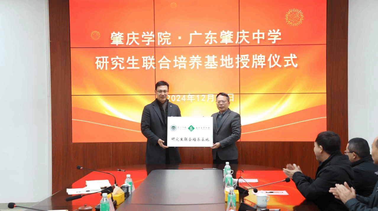本网讯 12月20日上午,副校长胡文涛带队赴广东肇庆中学,两校共同举办研究生联合培养基地签约授牌仪式。研究生院、文学与传媒学院、马克思主义学院、数学与统计学院相关领导,肇庆中学党委书记陈淑玲、校长杨荣,与教师代表出席本次签约授牌仪式。