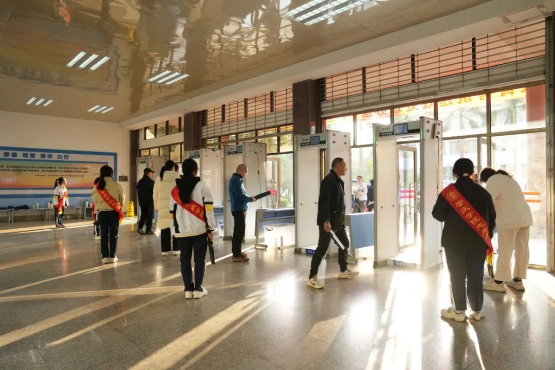 为做好考点考务工作,我校特制订《2025年全国硕士研究生招生考试必赢242net官网报考点考务工作方案》,成立党委书记谢冠华为组长的研究生招生考试工作领导小组,下设考务工作组、纪检监察组、宣传报道组、后勤保障组、安全保卫组、网络保障组、志愿服务组等7个工作组,各工作组分工明确、各司其职、通力合作,全力保障考试工作顺利进行。参加监考、巡考、志愿者、后勤保障等工作人员近500人。学校精心设计入考场路线和安检方案,设置考生物品存放区域和考生休息点,6个安检门通道和人脸识别通道,方便考生快速、有序入场。对特殊人群考生启用备用考场,提供志愿者接送服务,方便考生顺利完成各科考试。