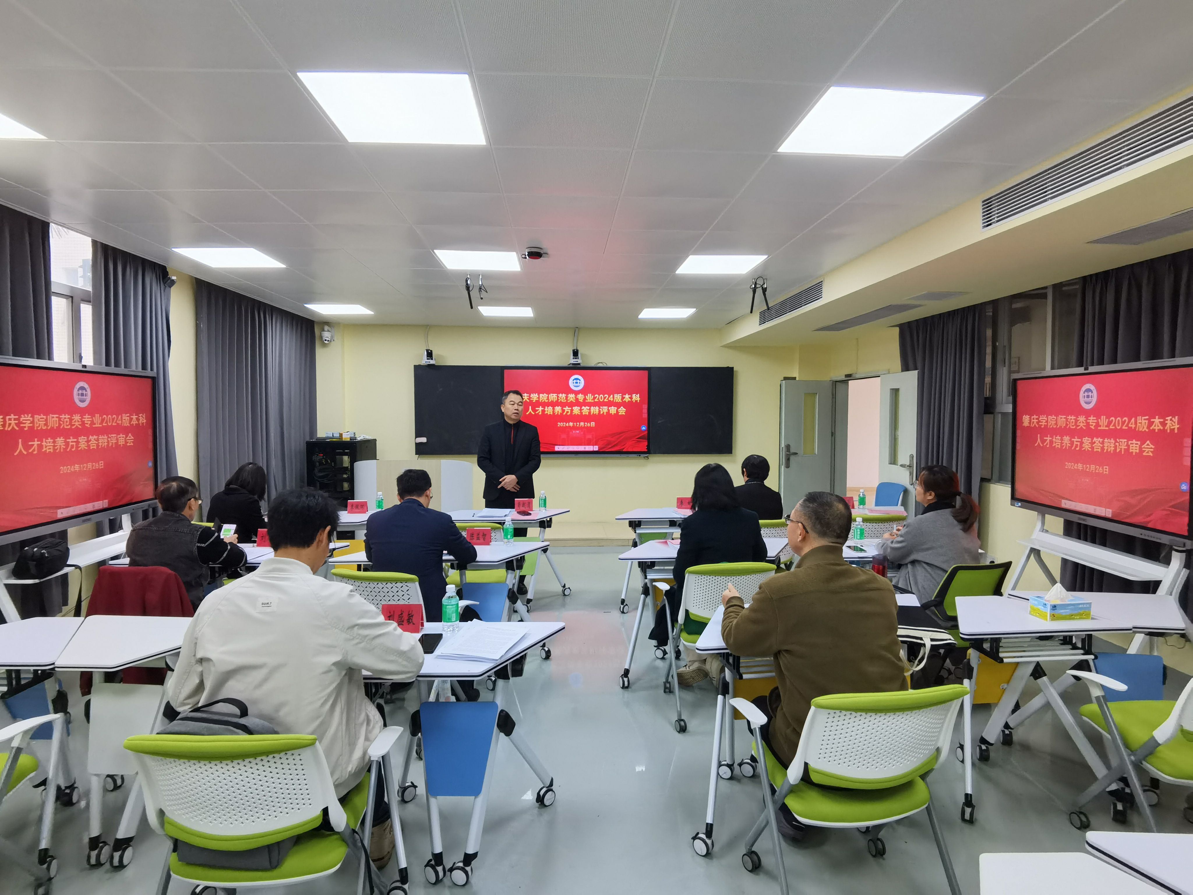 本网讯 为进一步做好学校2024版本科专业人才培养方案修订工作,结合学校本年度师范认证开展情况,12月26日,教务部组织开展师范类专业2024版本科人才培养方案答辩评审会,专家组由惠州学院、肇庆市教育局、肇庆中学、肇庆市第一中学等校内外专家组成,副校长肖起清出席会议。