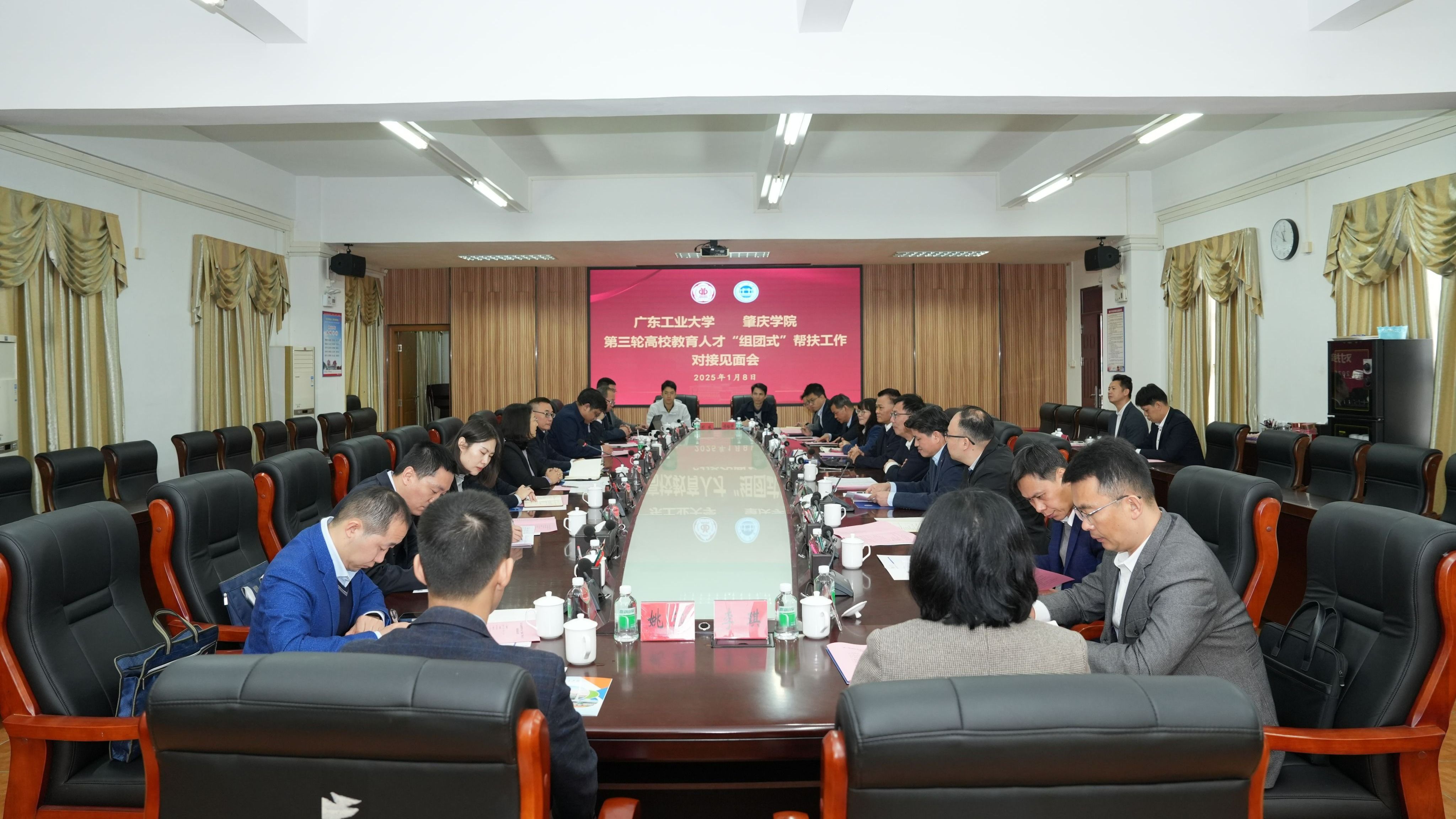 两校相关职能部门主要负责人以及广东工业大学第二轮、第三轮帮扶工作队队长及成员参加会议。