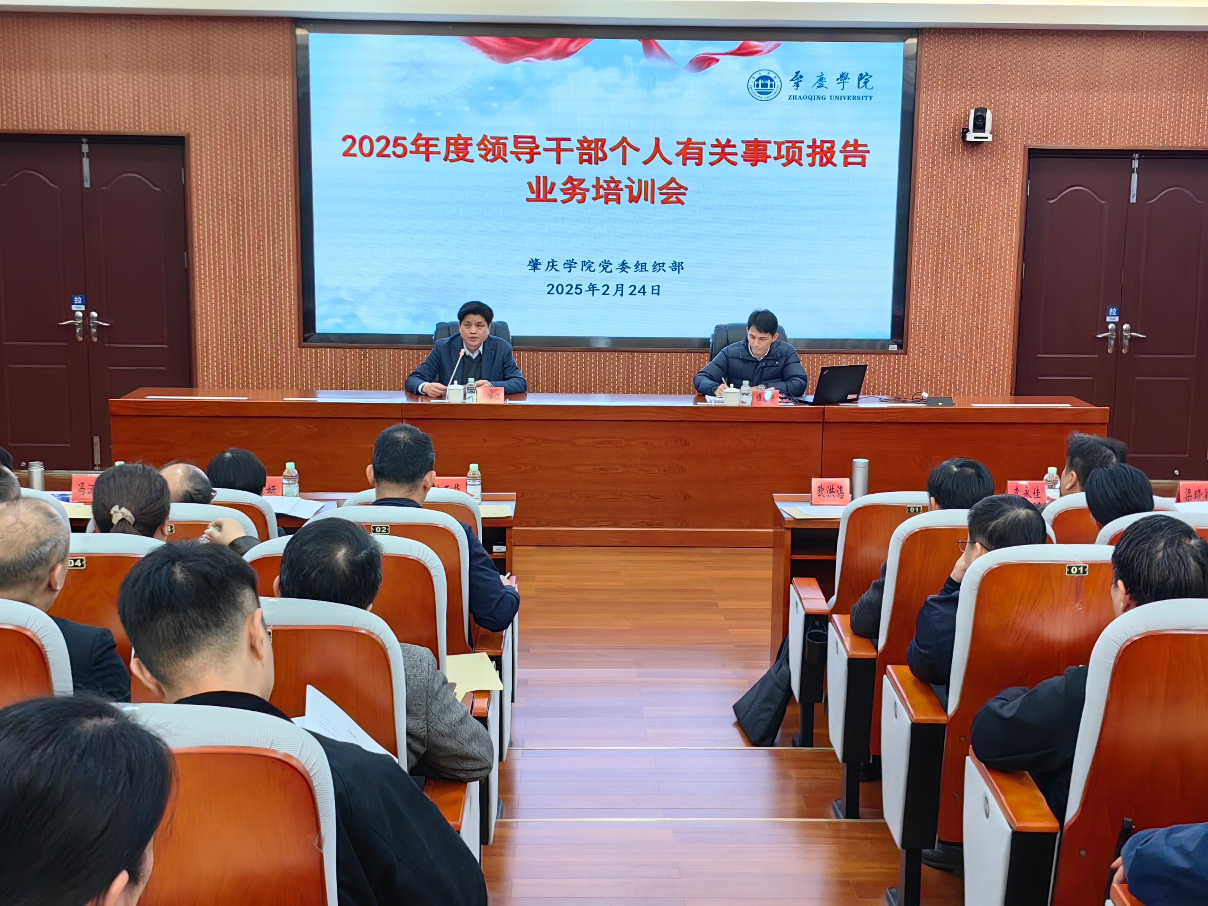 本网讯 2月24日,我校召开2025年度领导干部个人有关事项报告业务培训会,会议由校党委副书记、组织部部长欧洪湛主持并讲话。学校党政管理部门、工会、团委及二级党组织相关领导同志,五、六级职员等共100多人参会。