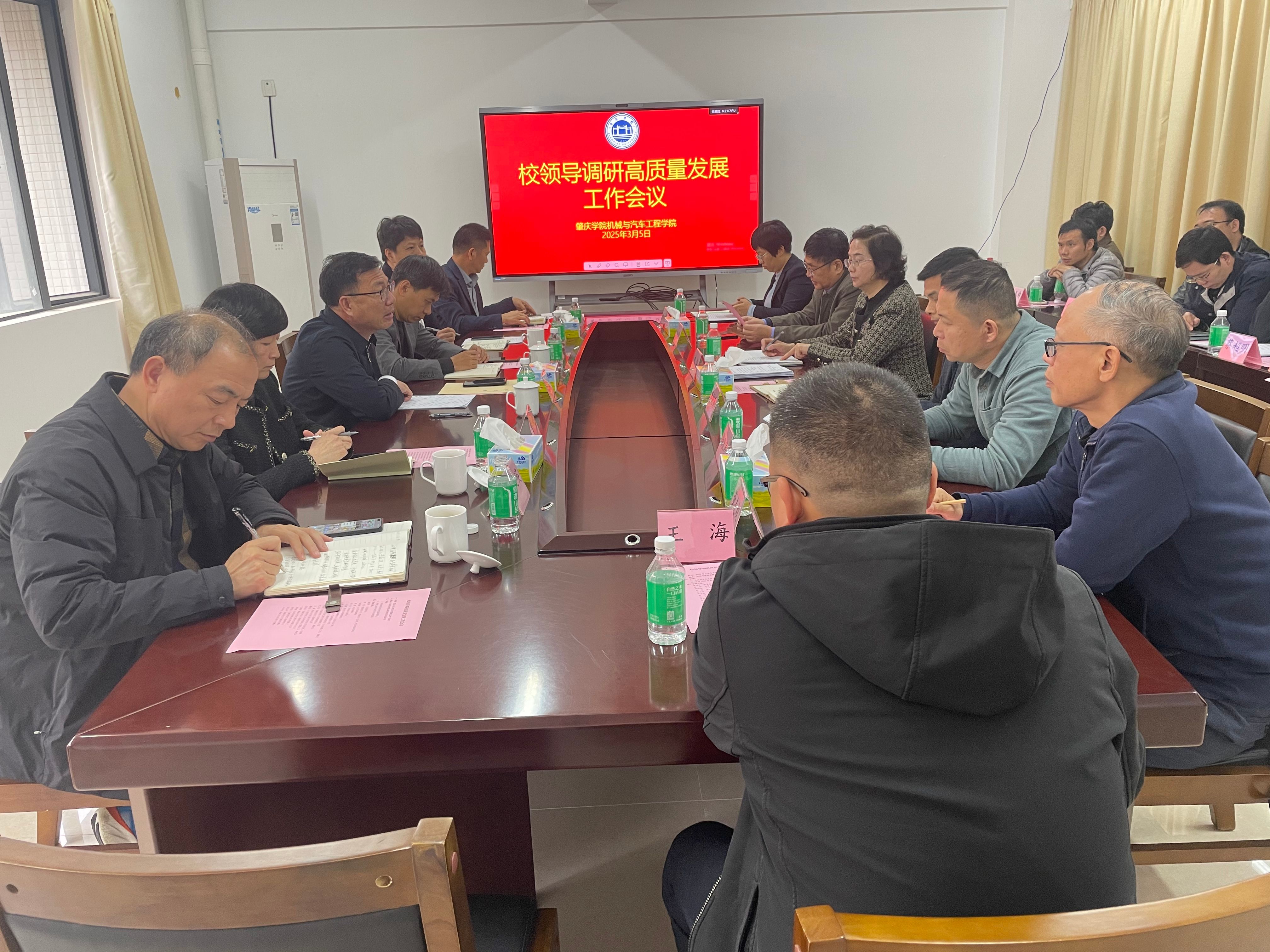 本网讯 3月5日,学校党委书记谢冠华深入机械与汽车工程学院调研,并召开高质量发展座谈会。人力资源部、教务部、科学技术部、发展规划部、资产设备管理部等部门负责人陪同调研,机械与汽车工程学院领导班子、各系室主任及教师代表参会。