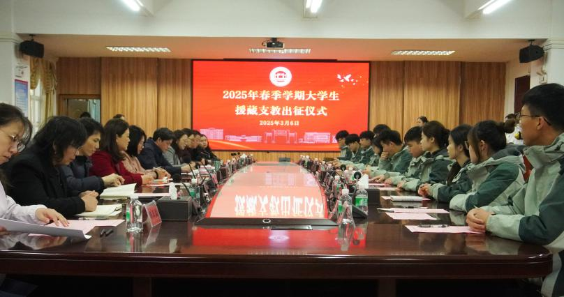本网讯 3月6日,我校2025年春季学期援藏支教出征仪式在临峰厅举行。学校党委副书记欧洪湛出席并讲话,相关职能部门和二级学院负责人、第十五批援藏支教指导教师和全体队员参加。仪式由学生工作部部长陈玉华主持。