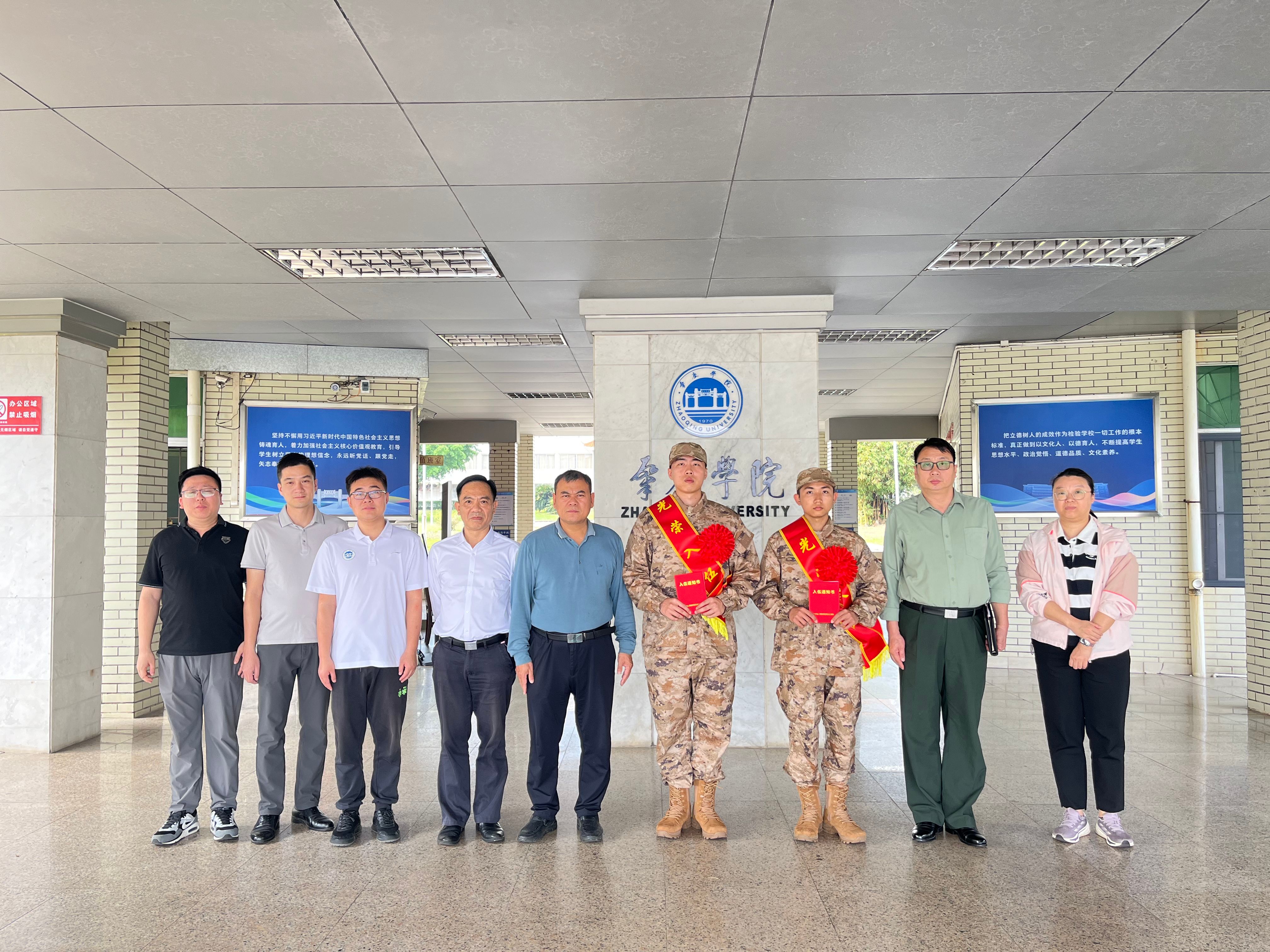 入伍学生2021级体育教育专业陈知远同学、2023级视觉传达设计专业林俊杰同学,在发言中表达了对母校培养和关心的感恩之情,用标准的军礼向在场的老师和领导致敬,并向母校郑重承诺为军营添彩,为母校争光。