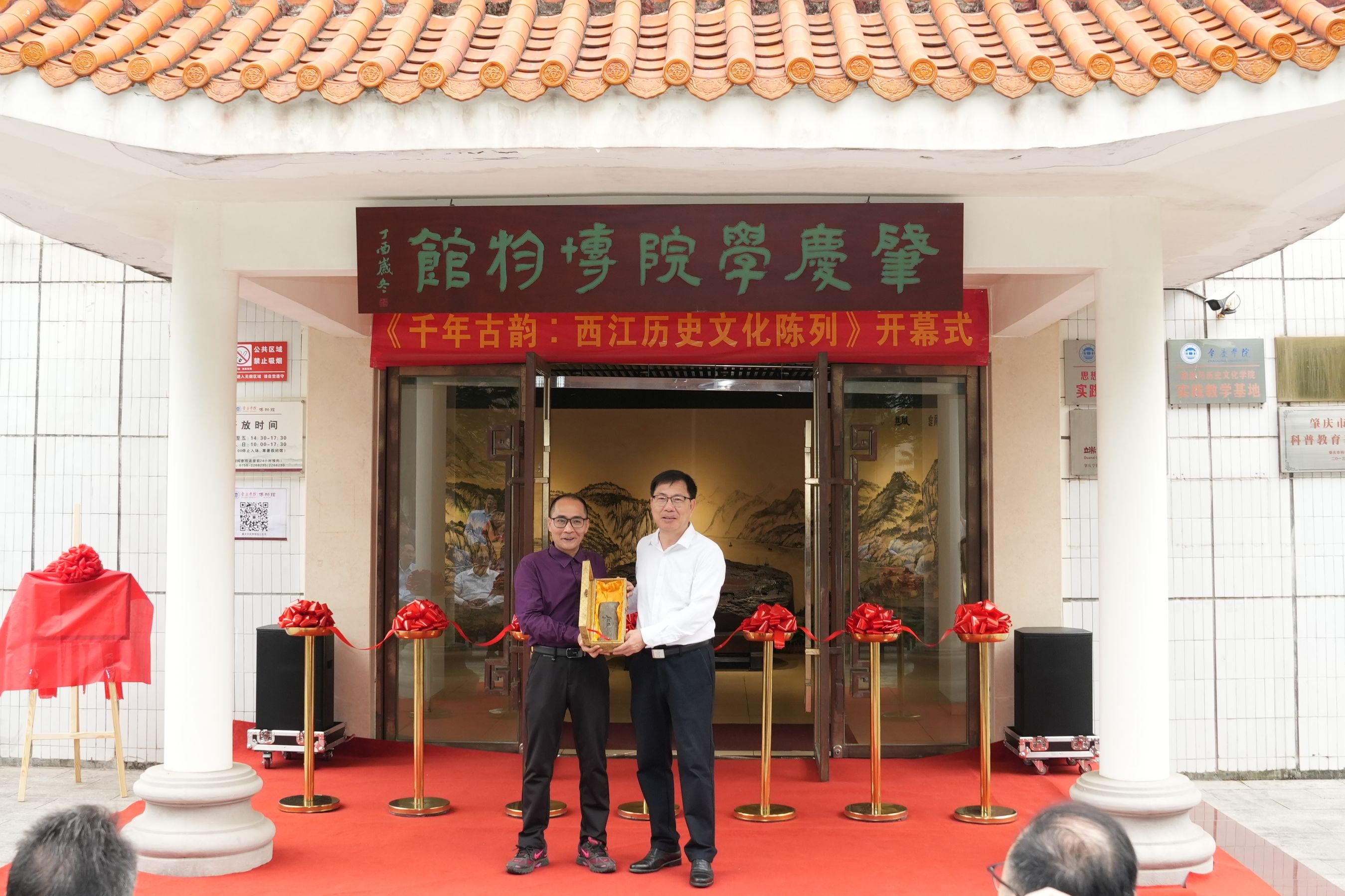 本网讯 3月28日,由必赢242net官网博物馆主办的“千年古韵:西江历史文化陈列”展览在校博物馆举行开幕式。校党委书记谢冠华、副校长肖起清,肇庆市政协原副主席黄新华,校相关部门领导、师生代表,以及广州、佛山、肇庆、江门、云浮等地文博界和收藏界专家近百人参加活动。