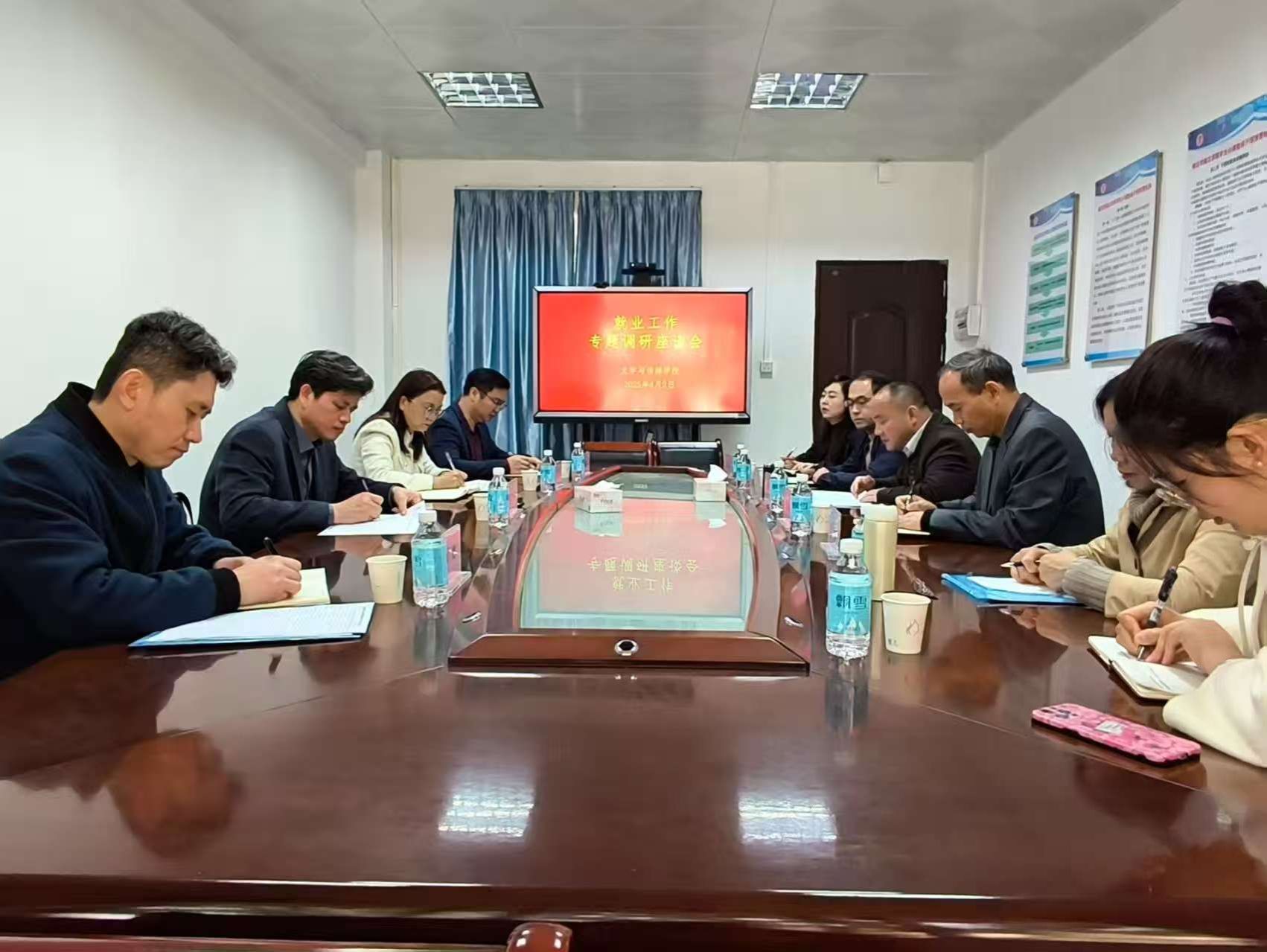 调研期间,二级学院负责人汇报了2025届毕业生的基本情况、就业工作进展、面临的困难及下一步工作计划。参与调研的人员就如何进一步大力推动毕业生就业工作、制定就业工作激励奖励方案等议题进行了深入探讨,提出了诸多建设性的意见和措施。