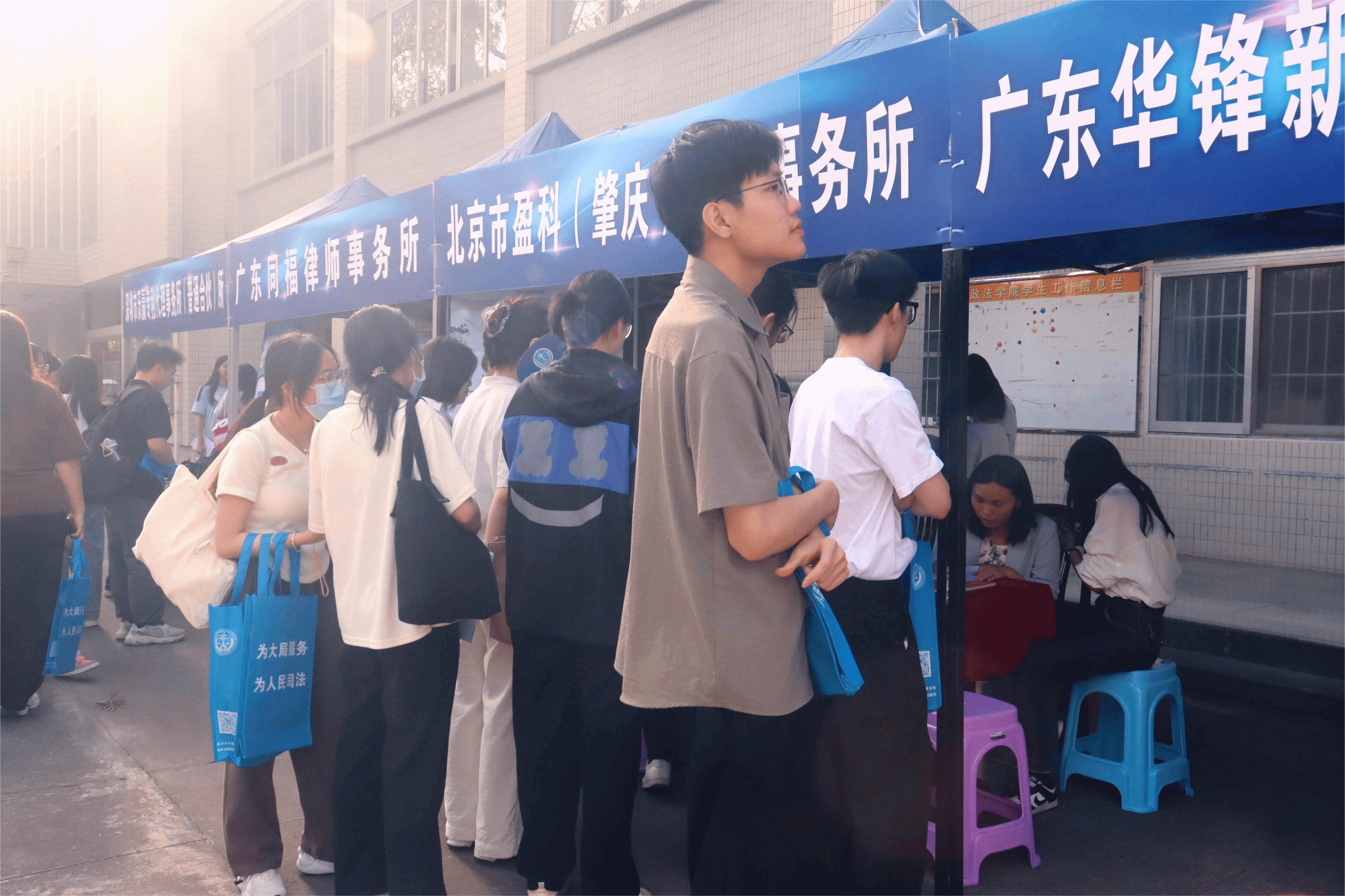 企业面试分会场招聘活动活动现场汇聚北京市盈科(肇庆)律师事务所、广东华锋新能源科技股份有限公司、深圳市沃赢专利代理事务所和广东同福律师事务所等多家优质企业,涵盖律师、法务、行政助理等岗位。学生与用人单位面对面交流,深入了解岗位需求与职业发展路径。现场还提供专业导师团队指导学生优化简历、提升面试技巧。