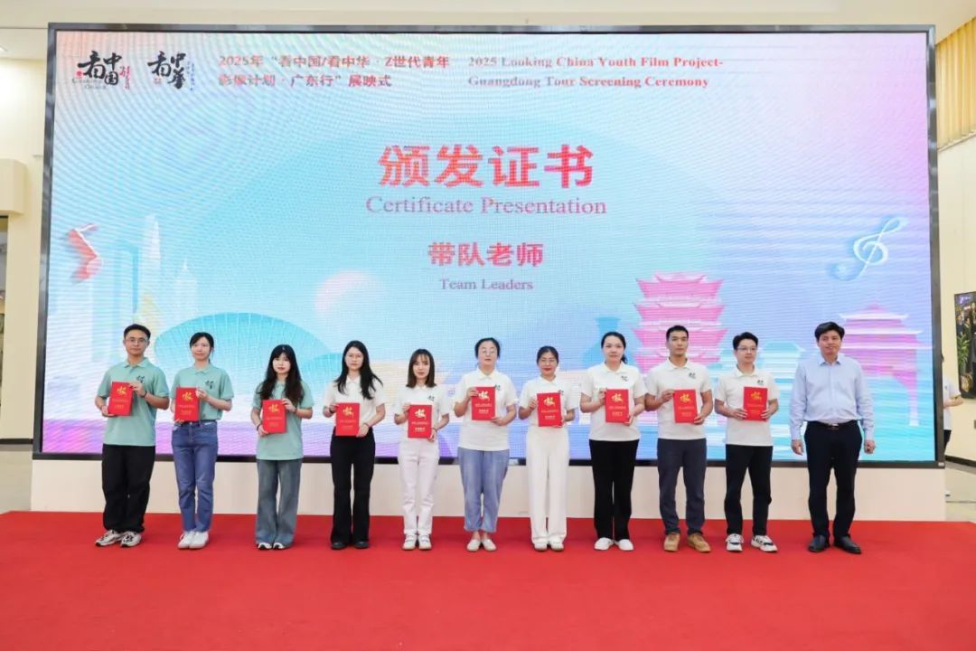 校党委副书记欧洪湛,北京师范大学中国文化国际传播研究院副院长罗军、北京师范大学艺术与传媒学院影视系系主任樊启鹏,校党委委员、宣传统战部部长、党政办公室主任陈前,“看中国”广东行项目主管胡志飞,葡萄牙鲁索夫纳大学教师Danilo Ignacio Miranda Cares出席展映仪式。学校相关职能部门的主要负责人以及项目组全体成员参加活动。今年,我校第四次承办“看中国”系列活动,此次活动以“创新、创想、创造”为年度主题,汇聚西班牙、哥伦比亚、爱沙尼亚、葡萄牙、印度等国家的十位青年导演以及五位港澳台地区的创作者,将视野聚焦于传统技艺与时代发展的创新前沿,记录下传统技艺与现代智慧的碰撞,经过17天的探索与创作,项目组成员创作出15部展现岭南文化基因与时代脉动的影像作品和2部“第三只眼”纪录片,搭建起跨文明对话的桥梁,让世界透过多元视角,看见一个在传统赓续中创新求变的真实中国。